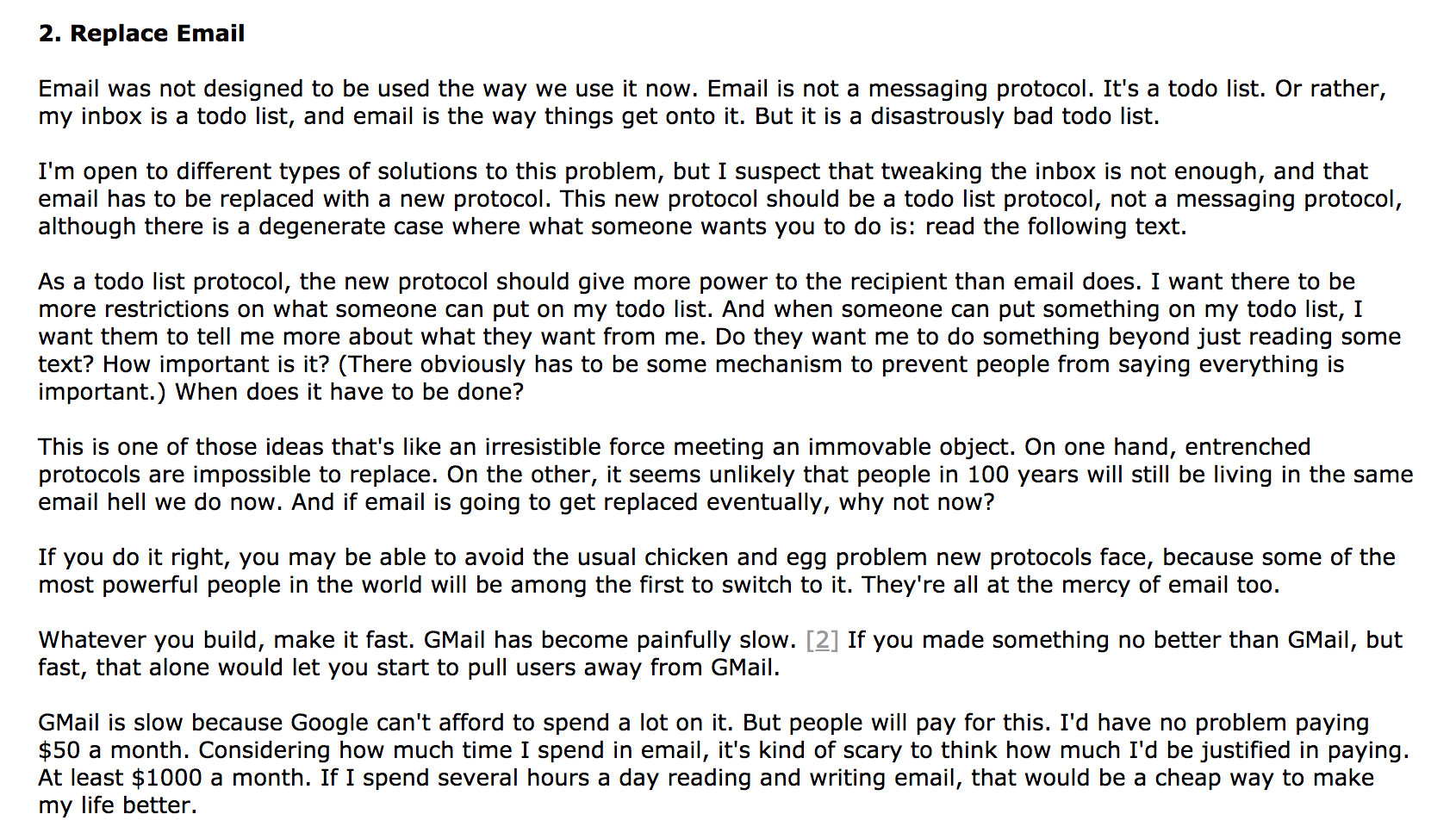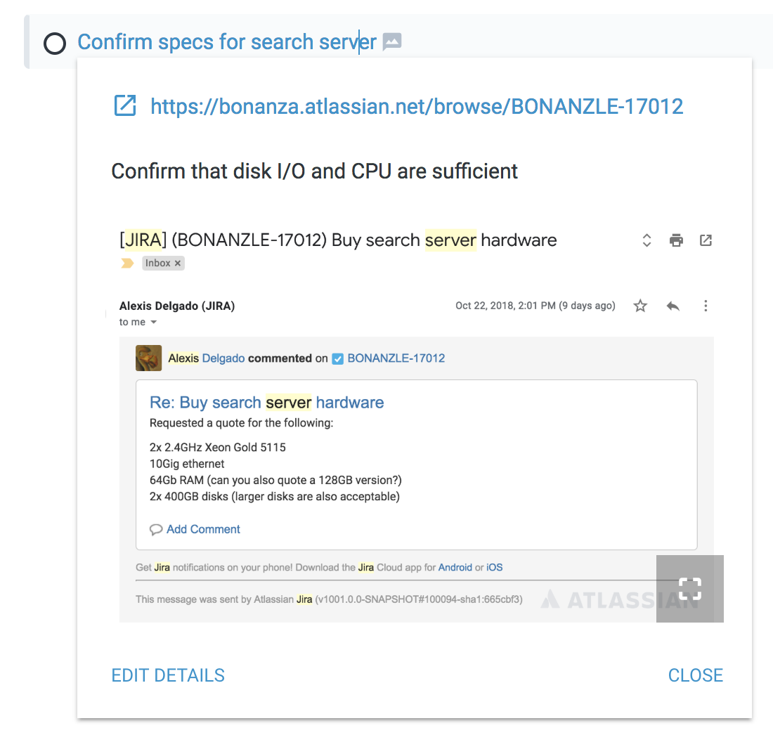 Email -> todo list: It's a Frighteningly Ambitious Startup Idea to treat an email inbox more like what it really is: a glorified todo list. The pieces to make a better inbox are already in Amplenote. This email becomes this list item, which lets you attack the email with the weapons afforded by Task Detail. Unstar and make a quick break for the inbox exit.