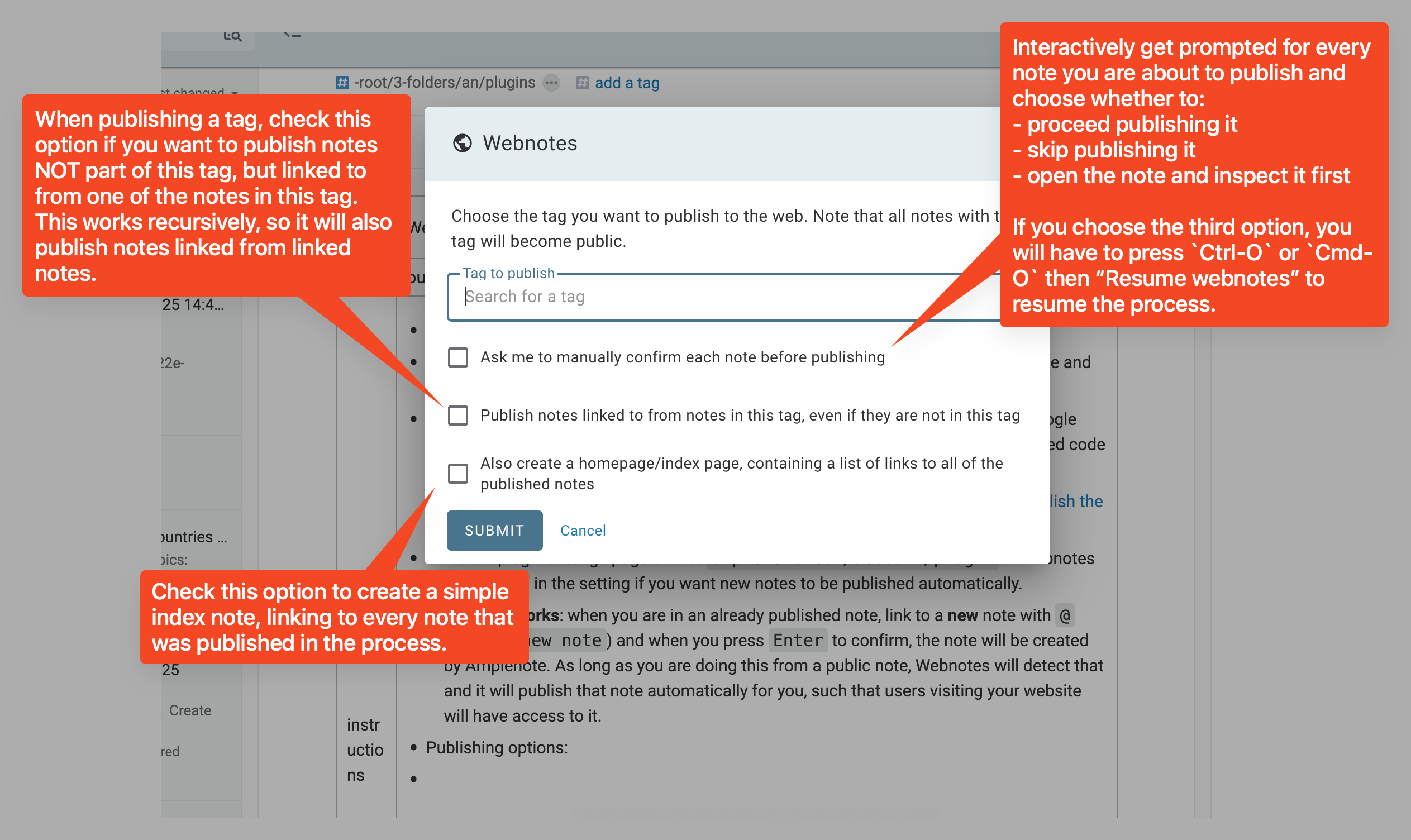 "Choose the tag you want to publish to the web. Note that all notes with this tag will become public.",