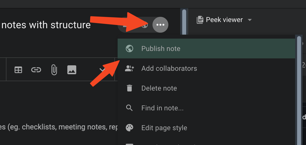 Publish your template note using the note options