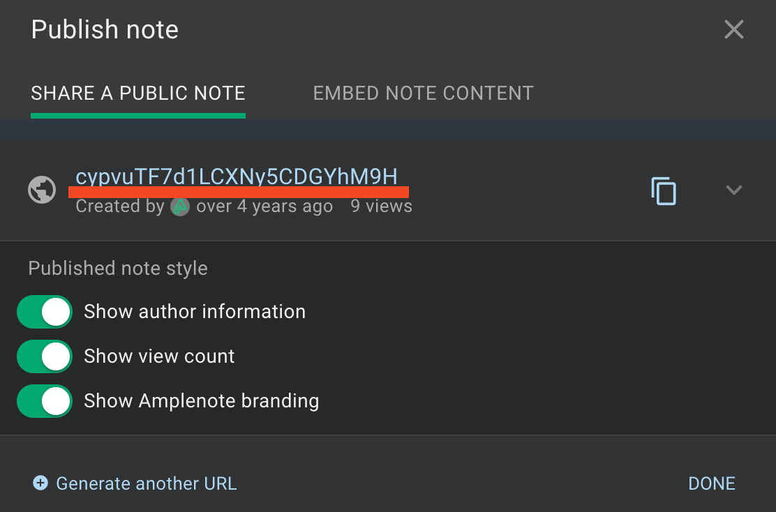 amplenote.com/notesand before any?sign (like this)public note token = the external (public) identifier of a published note (in the publish note menu and in its public URL)