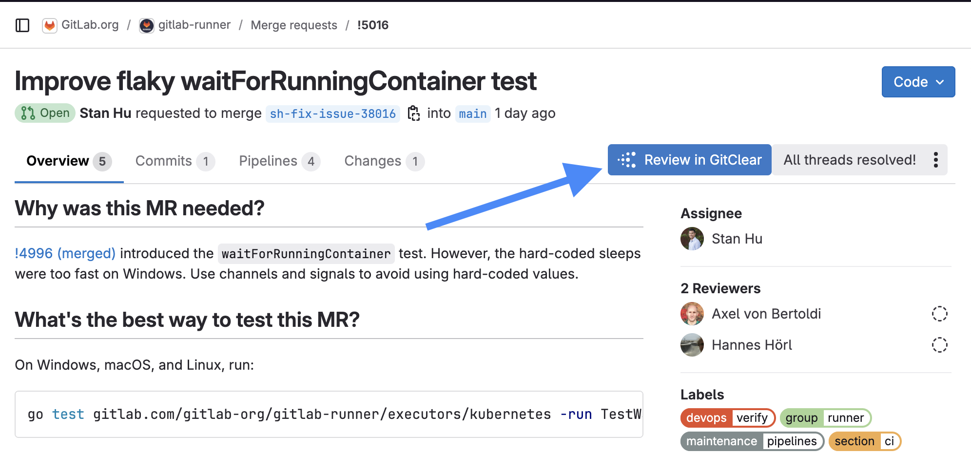 Are you a GitClear user whose team often shares links to GitHub or GitLab pull requests? If so, we've built a tiny Chrome extension you can install to ensure that you're one click away from being able to review a pull request's "slimmed down" version on GitClear (where pull request reviews average 25% less lines of code than GitHub):