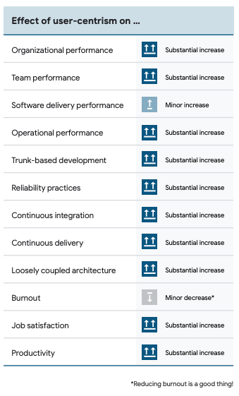 Headline finding: Teams with strong user-focus have 40% higher organizational performance.