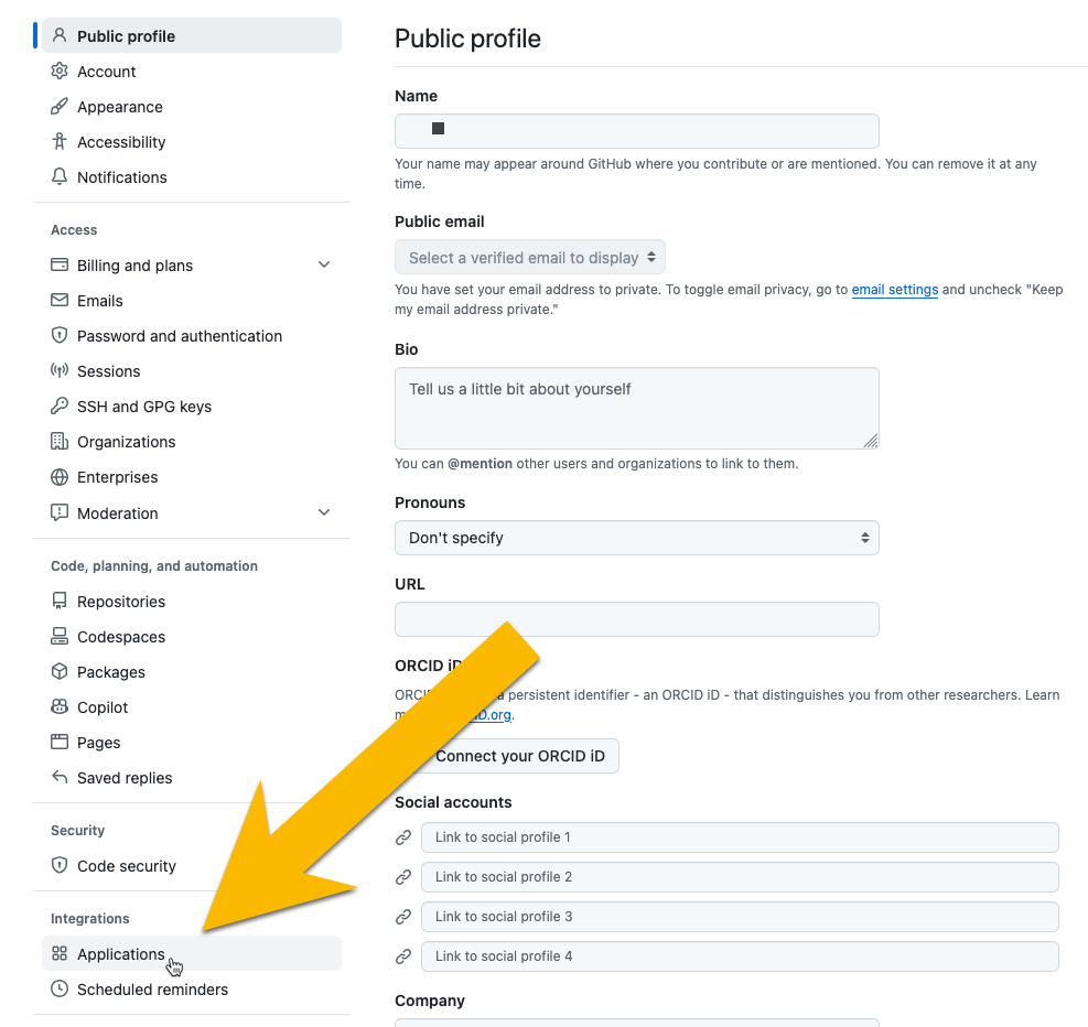 Click "Settings" then "Applications" (under the "Integrations" heading in left) after clicking the ⚙️ icon at the upper right of any page.