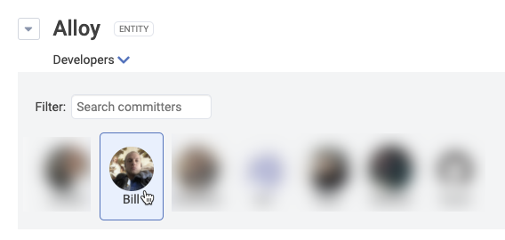 This is possible by filtering on individual developers from the "Developers" dropdown beneath the Entity's title: