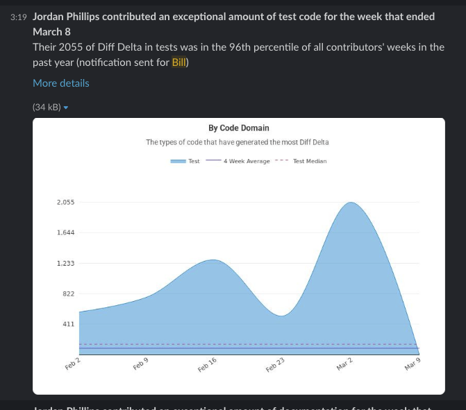 Once you have picked a channel for notifications, and chosen which notifications warrant the "Slack treatment," you will periodically receive messages posted to the channel you picked. They will look akin to this message: