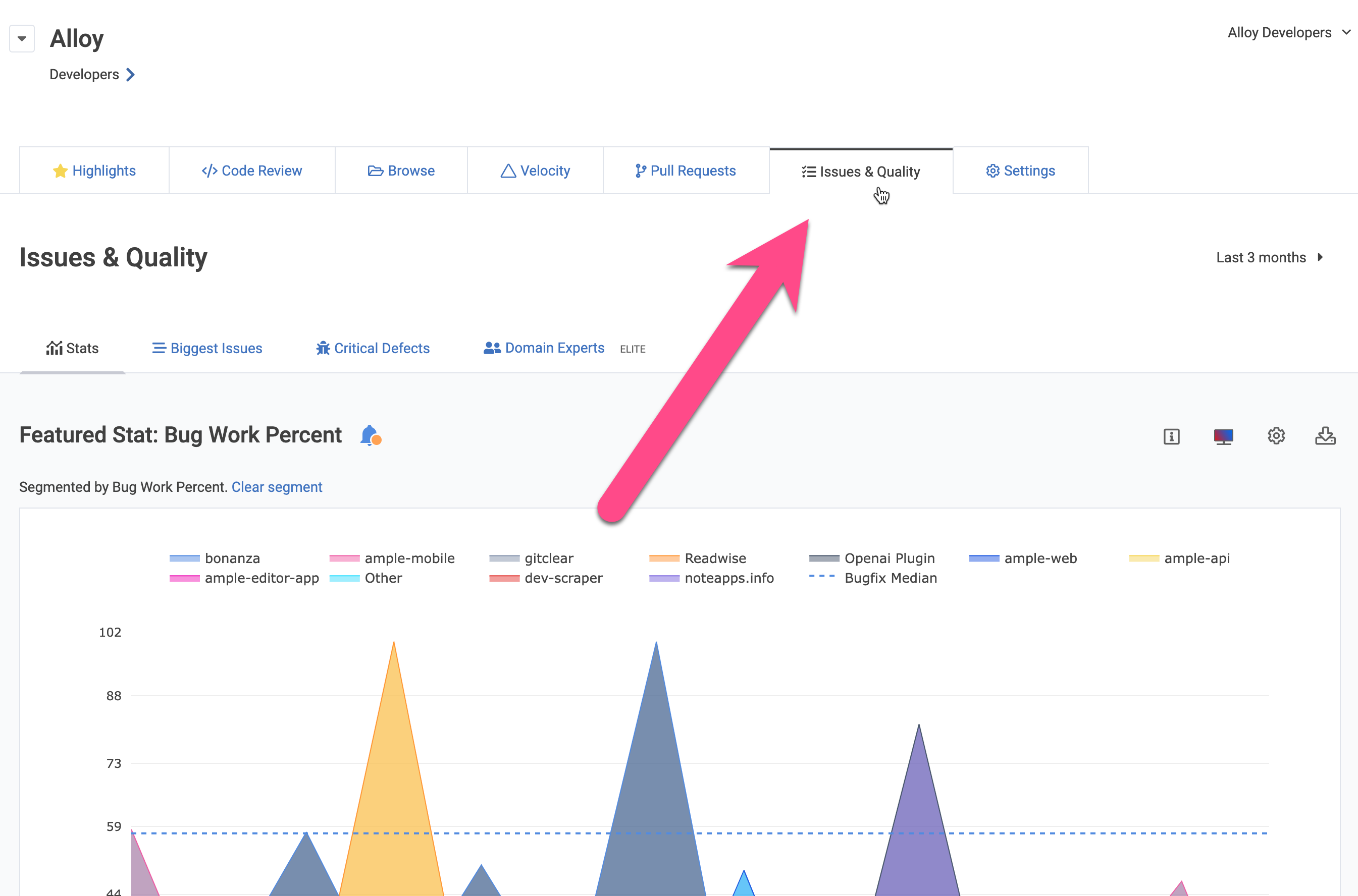 We have always allowed teams to see what percentage of their code progress effort is spent on fixing Jira tickets labeled "bugs." But as our research has proven, more than half of the regular team's bug fixing work happens outside the context of Jira tickets. Now, we offer a graph so that teams can better tease out the true, full cost of bug fixing compared to other types of work.