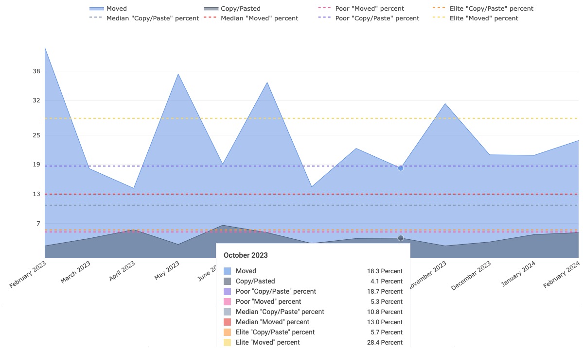 See how your percent of Copy/Paste and Move code compares to the industry median