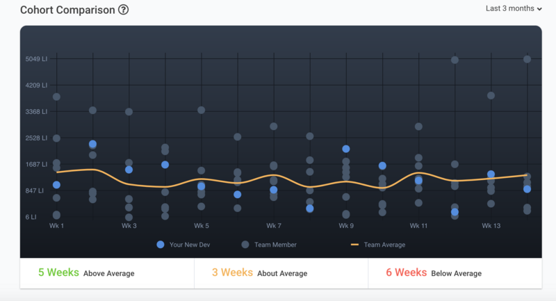 In Are You Sure You Hired the Right Developer?, we covered what makes it so maddeningly difficult to decipher a new developers output in less than six months post-hire. By putting a new developer on a team of their peers, you can use the Cohort Report to check how your new hire compares to past hires over the first few months.