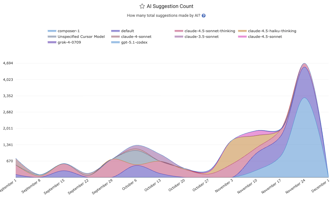 For users of Github Copilot, it is still possible to see the overall counts for how any AI usage stat is trending over time; it just isn't possible to give the full richness of model comparison that is possible from AI APIs that return this data.