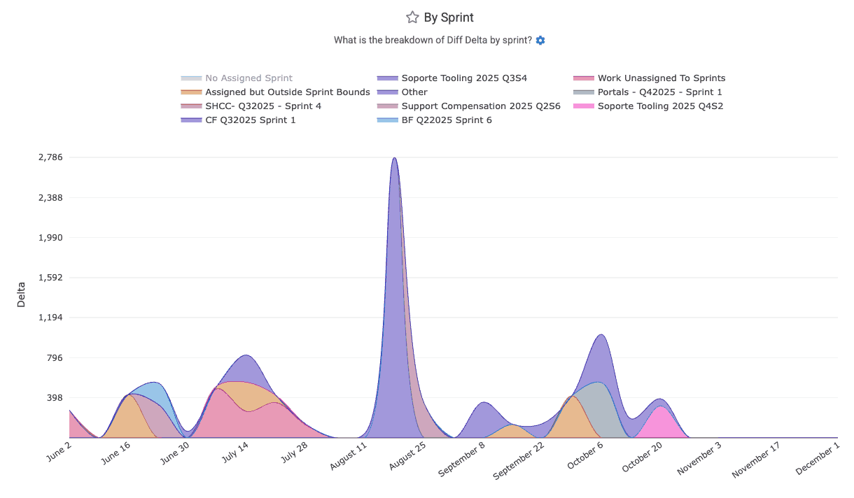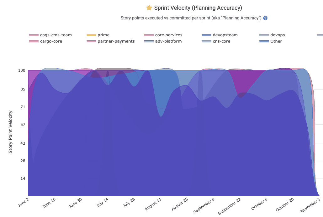 For the sake of VPs and executives that want to better grasp which teams have ended up with a large percentage of their Sprint work coming from tasks that were not scheduled at the beginning of the sprint.