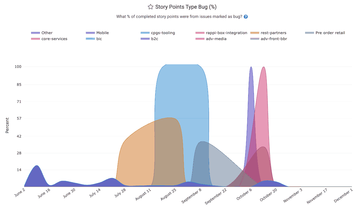 What percentage of a team's Story Points come from issues that were designated as "Bugs"?