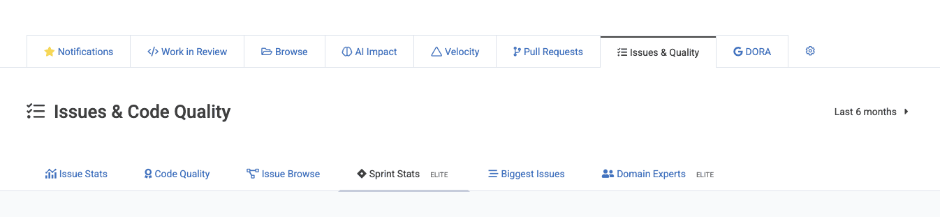 "Sprint Stats" are available for Elite subscribers under the "Issues & Quality tab"