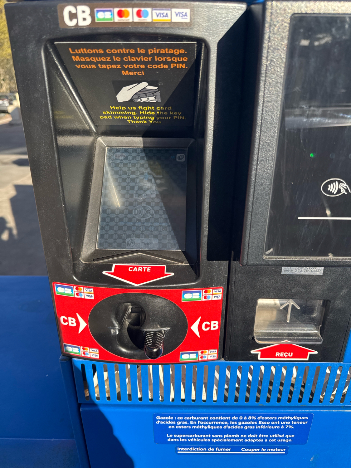Having learned that the tap to pay worked less often than inserting card, I dutifully inserted my Citi card into the machine, as I shielded the intensely bright glare from the sun to strain to see what the gas pump card machine was saying to me in French.