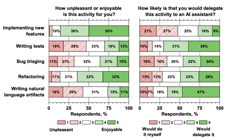 One of the specific areas that developers seem most willing to delegate to AI is tests. According to 2024 research from Jetbrains,