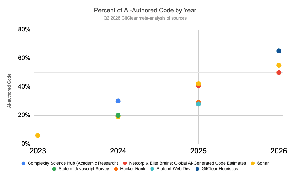 We have read, researched, and corroborated that 2026 is set to be the year where "percent of AI-authored code" rockets past 50%, to become the default means of code authorship for most people, most of the time.