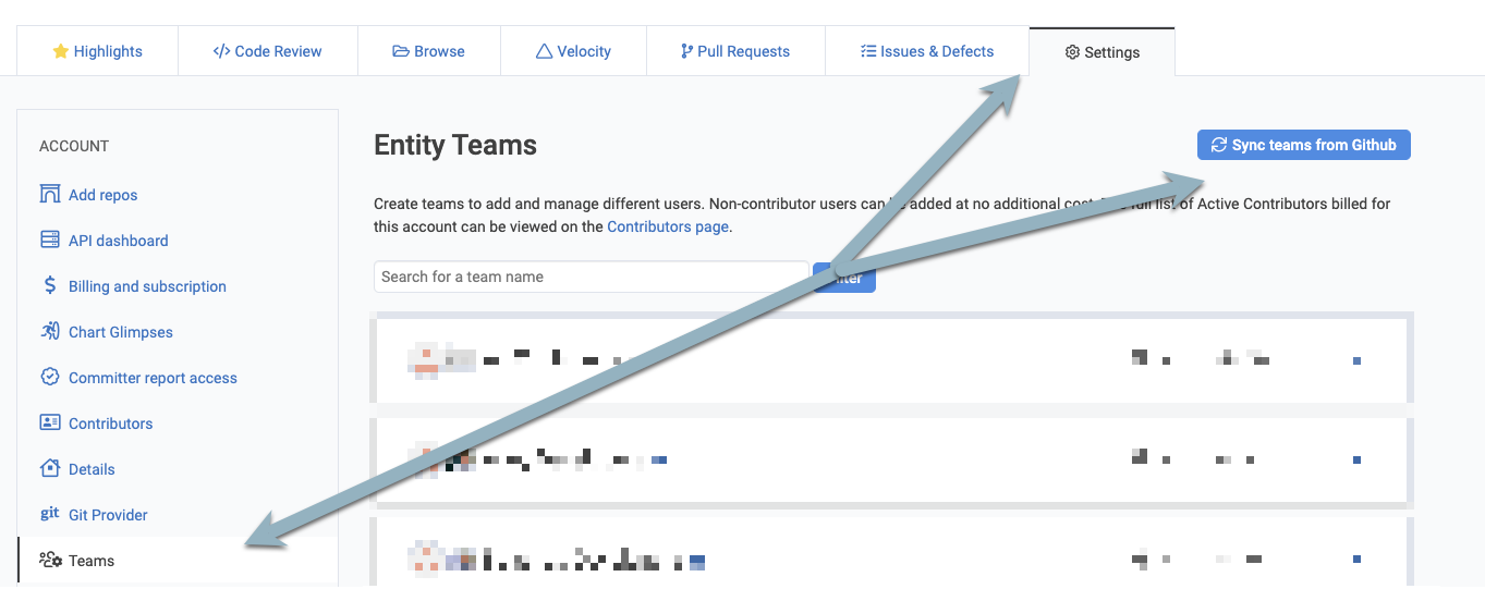 Syncing teams & repos is especially helpful when you are first setting up your GitClear account. After initial setup, it is usually sufficient to rely on GitClear's options for Automatic Importing of New Repos, which can automatically handle syncing in newly-added repos from GitHub, GitLab and Bitbucket web (the git providers whose API returns when a repo was created).