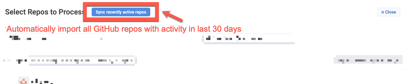 A button to sync recent repos should be present atop the page when a GitHub connection has been made