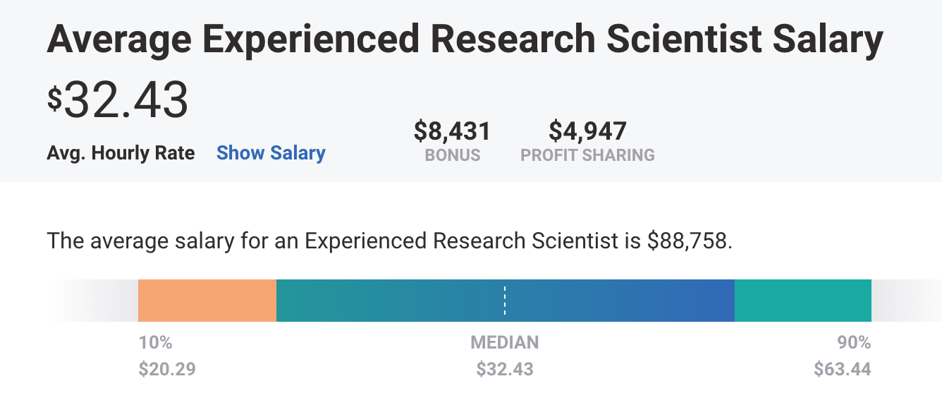 For the initial three studies that we would pursue, there is no pre-existing budget determined, but we hope that each experiment can be completed for $10,000 or less. According to Payscale, the average Research Scientist earns $25/hour whereas an "experienced" Research Scientist earns $32/hour. Assuming that we committed to $10,000 per study, that would allow 250 hours of research time per study at a rate of $40/hour, which exceeds the "Experienced Research Scientist" median so is hopefully fair & agreeable?