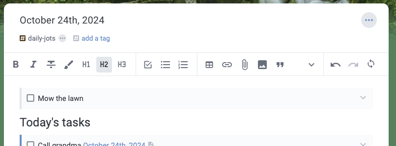 When filtering on a tag, we now include tasks that link to notes with that tag. This seemingly small change makes tag-based organization significantly more powerful. Tag a project note with "urgent," and all tasks linking to that note become visible when filtering for urgent items.